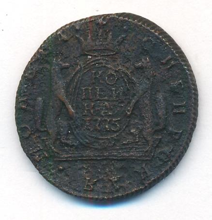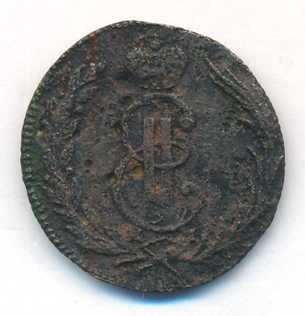 Лицевая сторона - два соболя поддерживают щит с обозначением номинала (копейка) под короной, надпись «СИБИРСКАЯ МОНЕТА». Оборотная — вензель Екатерины II в венке из пальмовой и лавровой ветвей. Гурт — шнур, вес — 6,55 грамма.