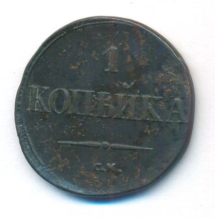 Лицевая сторона - «масонский» орел и дата, оборотная — обозначение номинала (1 копейка). Нормативный вес — 4,55 грамма, гурт гладкий.