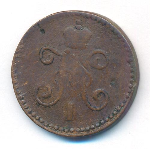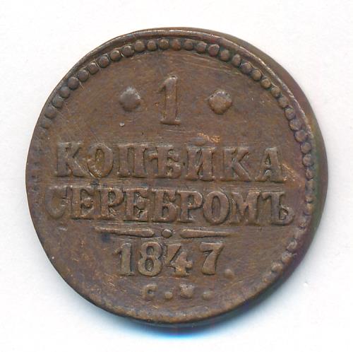Лицевая сторона — вензель Николая I в бусовом ободке, оборотная — надпись «1 КОПЕЙКА СЕРЕБРОМ» и дата. Нормативный вес — 10,24 грамма, гурт гладкий.