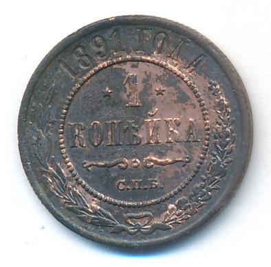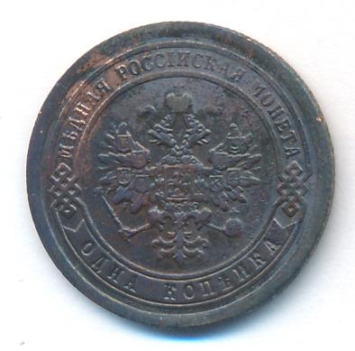 Лицевая сторона — двуглавый орел, надпись МЕДНАЯ РОССIЙСКАЯ МОНЕТА и обозначение номинала (одна копейка); оборотная — обозначение номинала (1 копейка) в бусовом ободке и дата. Нормативный вес — 3,28 грамма, гурт рубчатый.