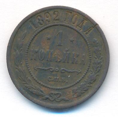 Лицевая сторона — двуглавый орел, надпись МЕДНАЯ РОССIЙСКАЯ МОНЕТА и обозначение номинала (одна копейка); оборотная — обозначение номинала (1 копейка) в бусовом ободке и дата. Нормативный вес — 3,28 грамма, гурт рубчатый.