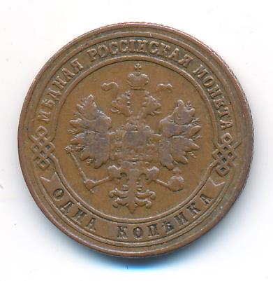 Лицевая сторона — двуглавый орел, надпись МЕДНАЯ РОССIЙСКАЯ МОНЕТА и обозначение номинала (одна копейка); оборотная — обозначение номинала (1 копейка) в бусовом ободке и дата. Нормативный вес — 3,28 грамма, гурт рубчатый.