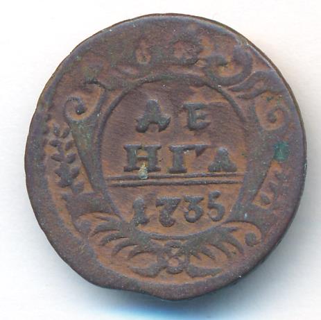 С 1730 года, как и 30 лет назад, медь возвращает себе статус разменных долей серебряной копейки — печатаются только денги и полушки. Указ от 22 декабря 1730 года регламентирует их выпуск на 10 рублей из пуда меди. Петровские копейки 20-рублевой стопы перечеканиваются в денги, а копейки Петра II 40-рублевой стопы — в полушки.