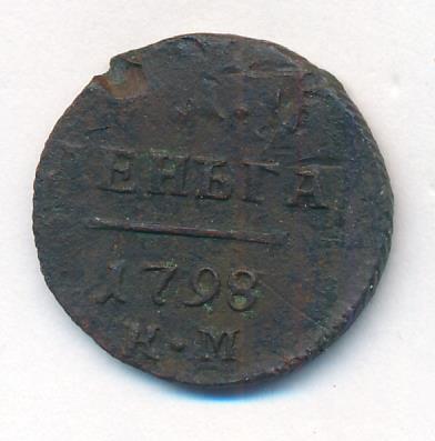 Лицевая сторона — вензель Павла I под короной, оборотная — номинал (1 деньга) и дата. Нормативный вес — 5,12 грамма, гурт — шнур.