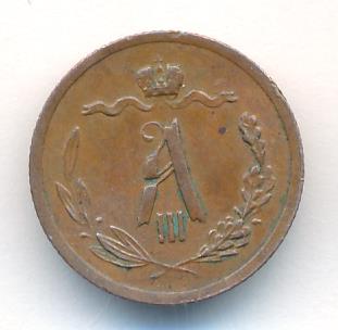 Лицевая сторона — вензель Александра II в венке из лавровой и дубовой ветвей; оборотная — обозначение номинала (1/2 копейки) и дата. Нормативный вес — 1,64 грамма, гурт рубчатый.