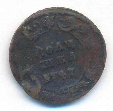 На лицевой стороне — двуглавый орел, на оборотной — обозначение номинала (полушка) и дата. Гурт — шнур, нормативный вес — 4, 10 грамма.