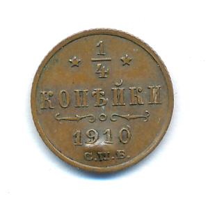 Лицевая сторона — вензель Александра II в венке из лавровой и дубовой ветвей; оборотная — обозначение номинала (1/4 копейки) и дата. Нормативный вес — 0,82 грамма, гурт рубчатый.