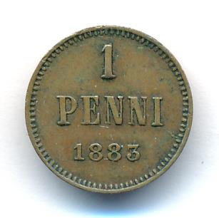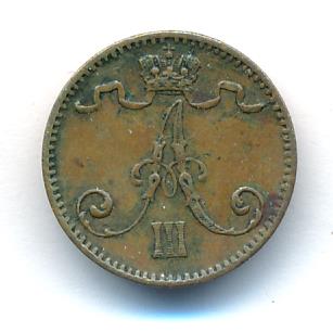 Лицевая сторона — вензель Александра II, оборотная — номинал (1 PENNIA) и дата. Нормативный вес — 1,28 грамма, гурт гладкий.