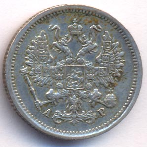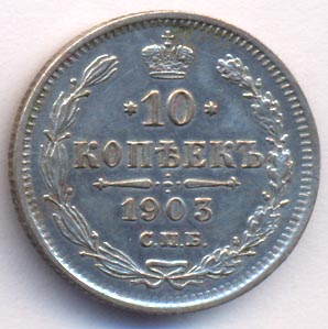 Лицевая сторона — гербовый орел, оборотная —обозначение номинала (10 копеекъ), окруженное венком из лавровой и дубовой ветвей и дата.
