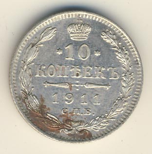 Лицевая сторона — гербовый орел, оборотная —обозначение номинала (10 копеекъ), окруженное венком из лавровой и дубовой ветвей и дата.