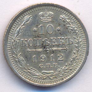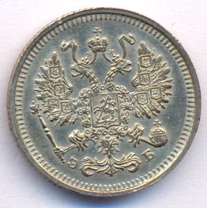 Лицевая сторона — гербовый орел, оборотная —обозначение номинала (10 копеекъ), окруженное венком из лавровой и дубовой ветвей и дата.