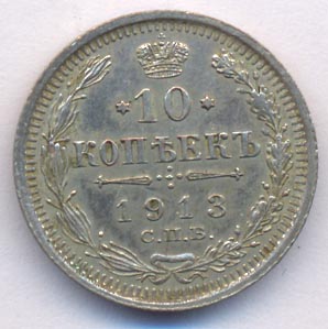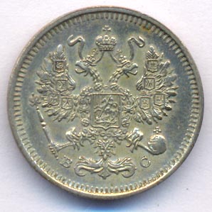 Лицевая сторона — гербовый орел, оборотная —обозначение номинала (10 копеекъ), окруженное венком из лавровой и дубовой ветвей и дата.