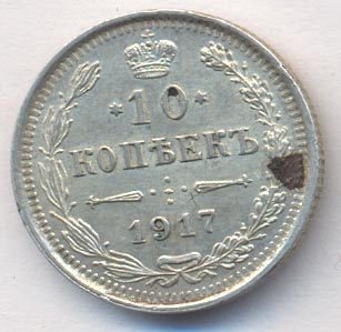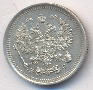 Лицевая сторона — гербовый орел, оборотная —обозначение номинала (10 копеекъ), окруженное венком из лавровой и дубовой ветвей и дата.