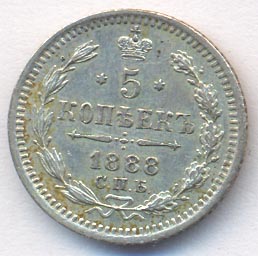 Лицевая сторона — гербовый орел, оборотная —обозначение номинала (5 копеекъ), окруженное венком из лавровой и дубовой ветвей и дата.