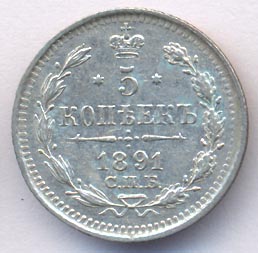 Лицевая сторона — гербовый орел, оборотная —обозначение номинала (5 копеекъ), окруженное венком из лавровой и дубовой ветвей и дата.