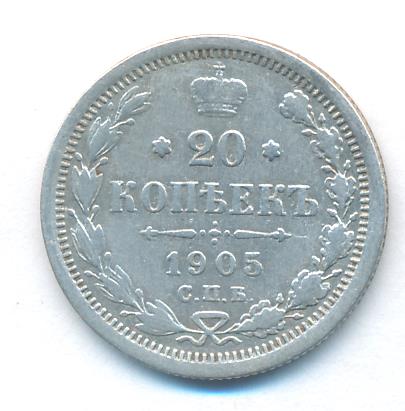 Лицевая сторона — гербовый орел, оборотная —обозначение номинала (20 копеекъ), окруженное венком из лавровой и дубовой ветвей и дата.