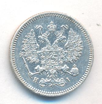 Лицевая сторона — гербовый орел, оборотная —обозначение номинала (10 копеекъ), окруженное венком из лавровой и дубовой ветвей и дата.