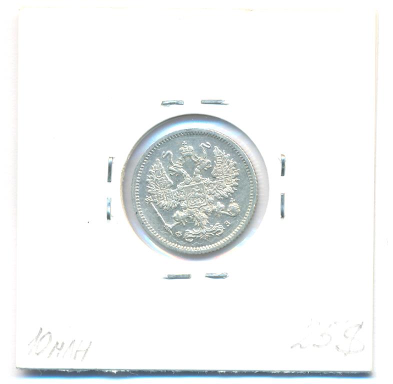 Лицевая сторона — гербовый орел, оборотная —обозначение номинала (10 копеекъ), окруженное венком из лавровой и дубовой ветвей и дата.