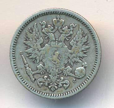 Лицевая сторона — российский двуглавый орел с гербом Великого княжества Финляндского на груди, оборотная — номинал и дата в венке из дубовых листьев. Проба — 750, нормативный вес — 2,55 грамма, гурт рубчатый.