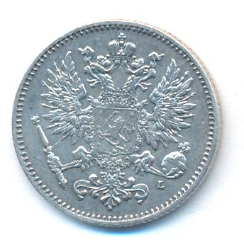 Лицевая сторона — российский двуглавый орел с гербом Великого княжества Финляндского на груди, оборотная — номинал и дата в венке из дубовых листьев. Проба — 750, нормативный вес — 2,55 грамма, гурт рубчатый.