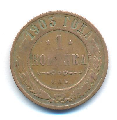 Лицевая сторона — двуглавый орел, надпись МЕДНАЯ РОССIЙСКАЯ МОНЕТА и обозначение номинала (одна копейка); оборотная — обозначение номинала (1 копейка) в бусовом ободке и дата. Нормативный вес — 3,28 грамма, гурт рубчатый.