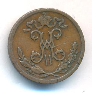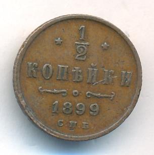 Лицевая сторона — вензель Александра II в венке из лавровой и дубовой ветвей; оборотная — обозначение номинала (1/2 копейки) и дата. Нормативный вес — 1,64 грамма, гурт рубчатый.