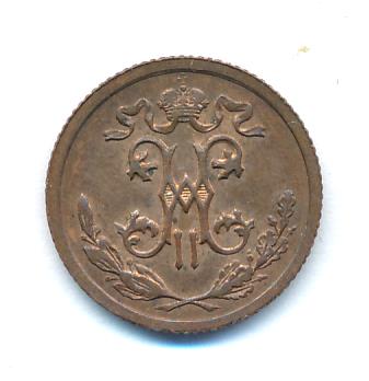 Лицевая сторона — вензель Александра II в венке из лавровой и дубовой ветвей; оборотная — обозначение номинала (1/2 копейки) и дата. Нормативный вес — 1,64 грамма, гурт рубчатый.