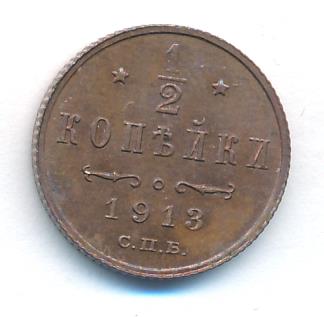 Лицевая сторона — вензель Александра II в венке из лавровой и дубовой ветвей; оборотная — обозначение номинала (1/2 копейки) и дата. Нормативный вес — 1,64 грамма, гурт рубчатый.