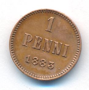 Лицевая сторона — вензель Александра II, оборотная — номинал (1 PENNIA) и дата. Нормативный вес — 1,28 грамма, гурт гладкий.