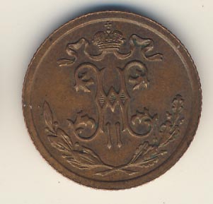 Лицевая сторона — вензель Александра II в венке из лавровой и дубовой ветвей; оборотная — обозначение номинала (1/2 копейки) и дата. Нормативный вес — 1,64 грамма, гурт рубчатый.