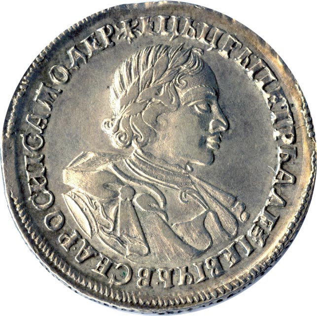 Легенда лицевой стороны - «Царь Петр Алексеевич Всея России Самодержец», оборотной - «Монета новая цена рубль» и дата кириллицей. Проба монет — 729, нормативный вес — 28, 44 грамма.