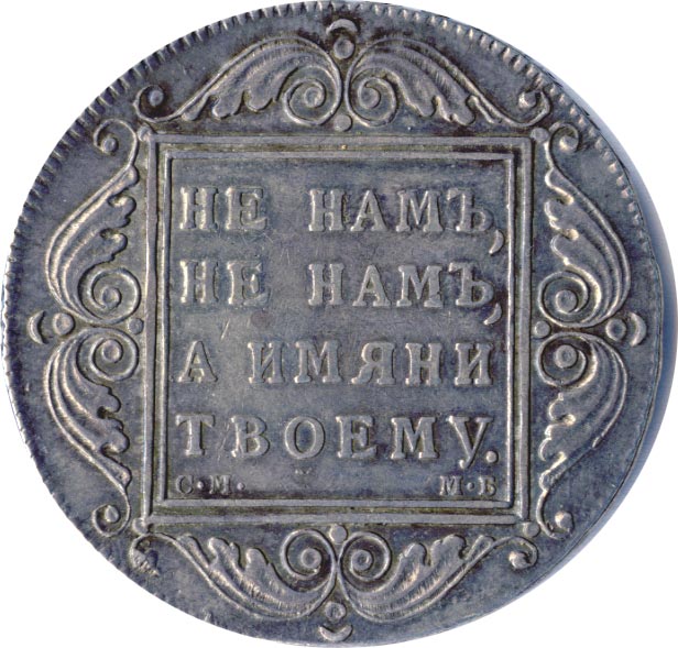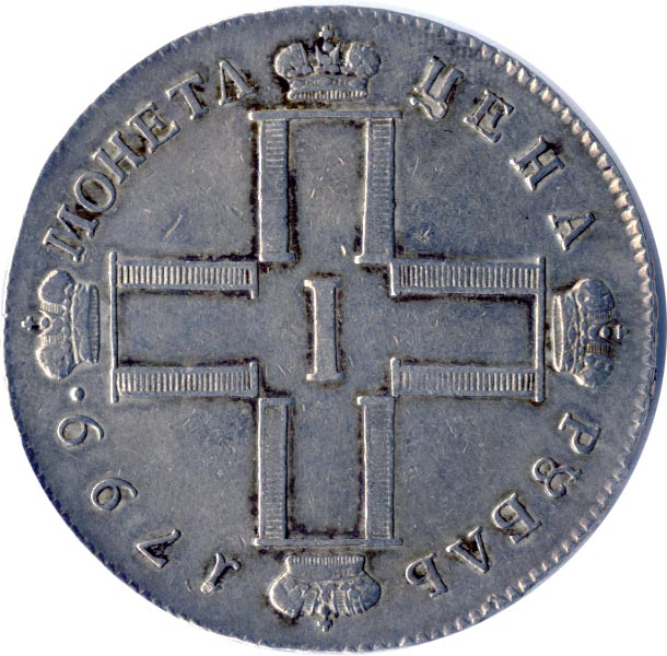 Лицевая сторона - крестообразная монограмма из четырех П и I в центре, надпись «МОНЕТА ЦЕНА РУБЛЬ» и дата, оборотная - надпись «НЕ НАМ, НЕ НАМ, А ИМЯНИ ТВОЕМУ» в картуше. Проба — 868, нормативный вес — 20,73 грамма, гурт — надпись «восемдесятъ третеи съ одною третью пробы».