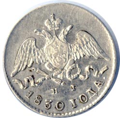 Первые полгода царствования Николая I изменений в монетном деле не происходит и выделка продолжается штемпелями предыдущего царствования.