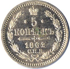 Лицевая сторона — гербовый орел, оборотная —обозначение номинала (5 копеекъ), окруженное венком из лавровой и дубовой ветвей и дата.