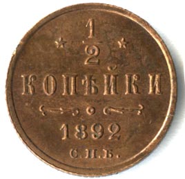 Лицевая сторона — вензель Александра II в венке из лавровой и дубовой ветвей; оборотная — обозначение номинала (1/2 копейки) и дата. Нормативный вес — 1,64 грамма, гурт рубчатый.