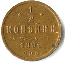 Лицевая сторона — вензель Александра II в венке из лавровой и дубовой ветвей; оборотная — обозначение номинала (1/2 копейки) и дата. Нормативный вес — 1,64 грамма, гурт рубчатый.