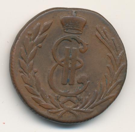 Лицевая сторона - два соболя поддерживают щит с обозначением номинала (копейка) под короной, надпись «СИБИРСКАЯ МОНЕТА». Оборотная — вензель Екатерины II в венке из пальмовой и лавровой ветвей. Гурт — шнур, вес — 6,55 грамма.