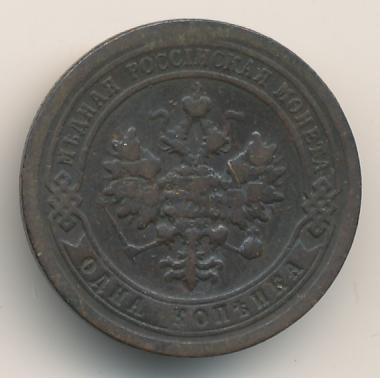 Лицевая сторона — двуглавый орел, надпись МЕДНАЯ РОССIЙСКАЯ МОНЕТА и обозначение номинала (одна копейка); оборотная — обозначение номинала (1 копейка) в бусовом ободке и дата. Нормативный вес — 3,28 грамма, гурт рубчатый.