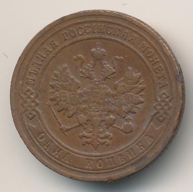 Лицевая сторона — двуглавый орел, надпись МЕДНАЯ РОССIЙСКАЯ МОНЕТА и обозначение номинала (одна копейка); оборотная — обозначение номинала (1 копейка) в бусовом ободке и дата. Нормативный вес — 3,28 грамма, гурт рубчатый.
