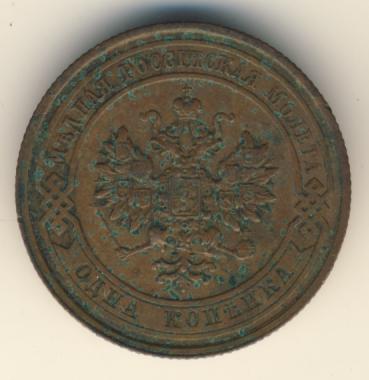 Лицевая сторона — двуглавый орел, надпись МЕДНАЯ РОССIЙСКАЯ МОНЕТА и обозначение номинала (одна копейка); оборотная — обозначение номинала (1 копейка) в бусовом ободке и дата. Нормативный вес — 3,28 грамма, гурт рубчатый.