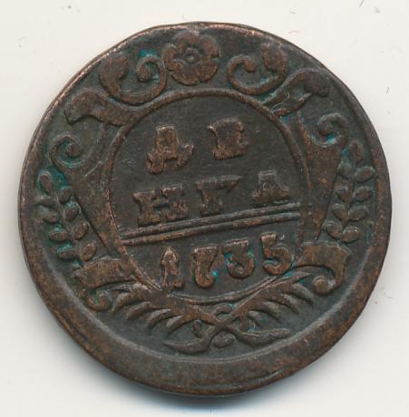 С 1730 года, как и 30 лет назад, медь возвращает себе статус разменных долей серебряной копейки — печатаются только денги и полушки. Указ от 22 декабря 1730 года регламентирует их выпуск на 10 рублей из пуда меди. Петровские копейки 20-рублевой стопы перечеканиваются в денги, а копейки Петра II 40-рублевой стопы — в полушки.