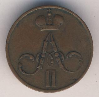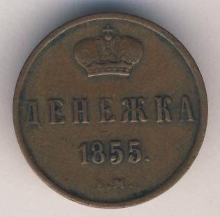Лицевая сторона — вензель Николая I, оборотная — обозначение номинала (денежка) и дата. Нормативный вес — 2,56 грамма, гурт гладкий.