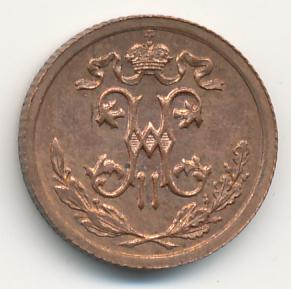 Лицевая сторона — вензель Александра II в венке из лавровой и дубовой ветвей; оборотная — обозначение номинала (1/2 копейки) и дата. Нормативный вес — 1,64 грамма, гурт рубчатый.