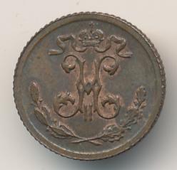 Лицевая сторона — вензель Александра II в венке из лавровой и дубовой ветвей; оборотная — обозначение номинала (1/4 копейки) и дата. Нормативный вес — 0,82 грамма, гурт рубчатый.