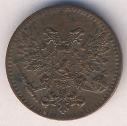 Лицевая сторона — вензель Александра II, оборотная — номинал (1 PENNIA) и дата. Нормативный вес — 1,28 грамма, гурт гладкий.