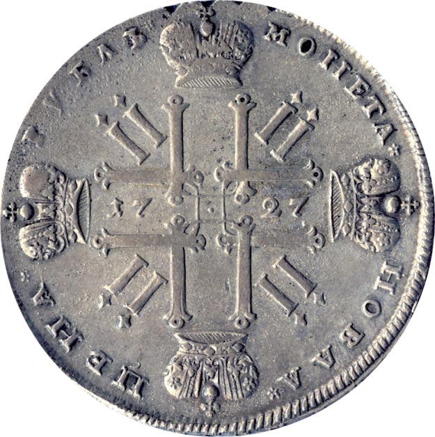 Дополнительно см. «Неизвестный рубль 1727 года» на сайте «Конрос».