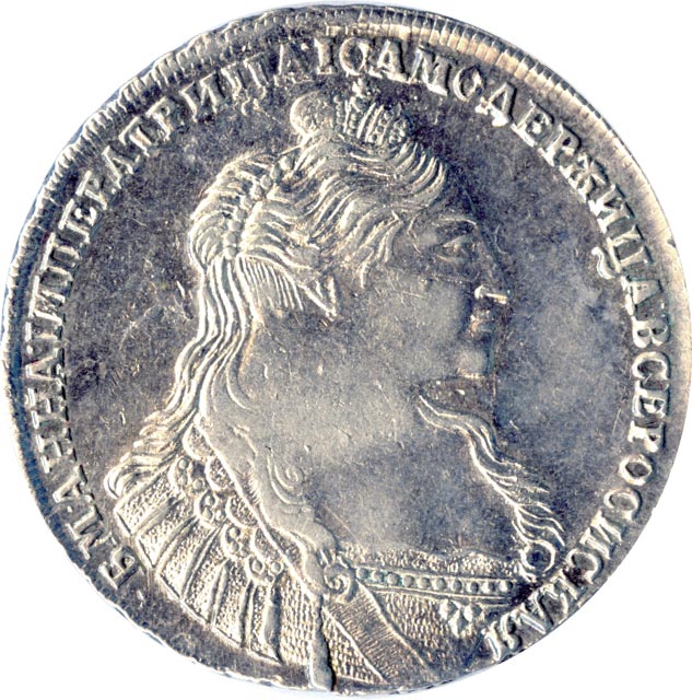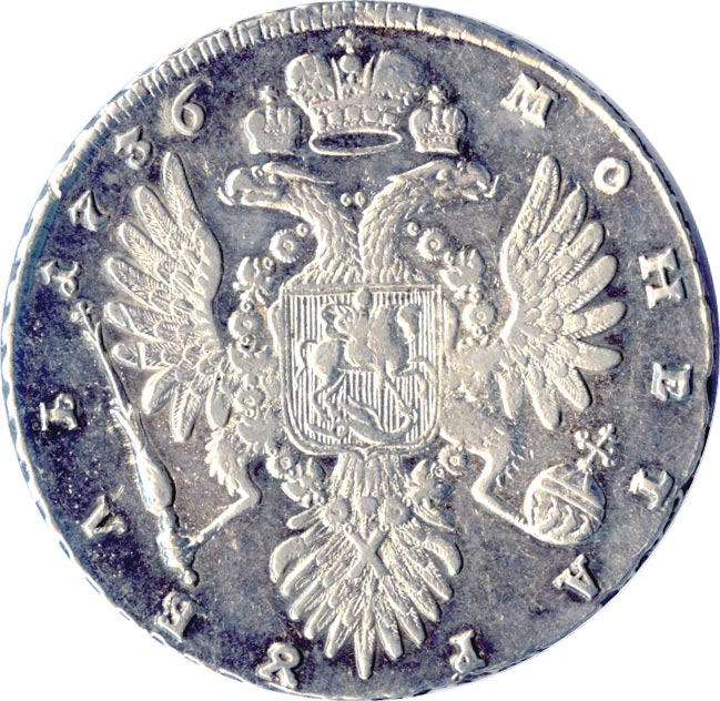 Рубль 1734-1737 годов «Со скошенным лбом»