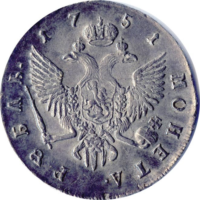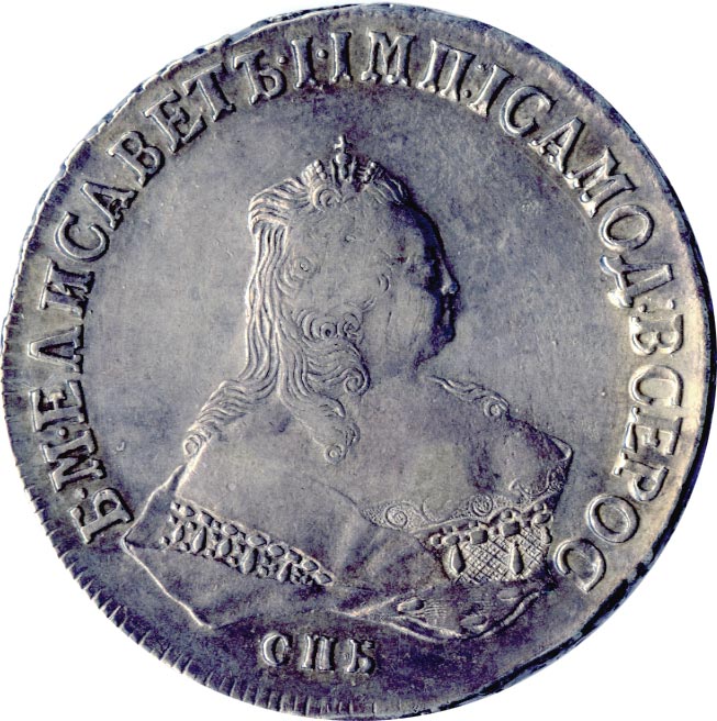 В 1741 году появляется и новый петербургский тип рубля — портрет погрудный, в плаще, без орденского знака (кроме очень редких монет этого года, выполненных штемпелями московского типа 65). Этот тип не меняется до 1754 года. С 1743 года такое же оформление получают петербургские полтины.