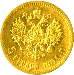 Штемпели пятирублевых монет (1898 года) использовались в Советский период для дополнительной чеканки золотых монет, необходимых для международных расчетов.
