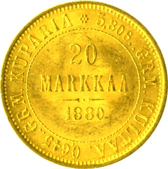 Еще во время русско-шведской войны 1788-1790 годов финские офицеры, недовольные шведским владычеством, составили заговор с целью образования самостоятельного финского государства под российским протекторатом. В результате успехов в русско-шведской войне 1808-1809 годов Финляндия вошла в состав Российской империи в качестве Великого княжества. С этого времени в ней вводится российская денежная система и вытесняется шведская. По ходатайству об уменьшении денежной единицы, слишком крупной для населения, манифестом от 23 марта 1860 года финскому банку разрешено чеканить «особую» монету — марку, разделенную на 100 пенни.